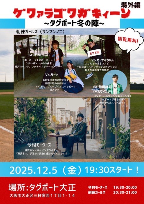 観覧無料、弾き語りで出演します。(出演時間:19時30分〜)